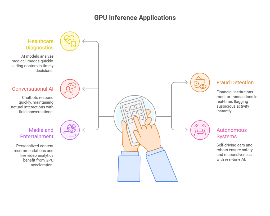 - Fraud detection: Financial institutions use real-time inference to monitor transactions. With GPU inference, suspicious activity can be flagged instantly before damage occurs.