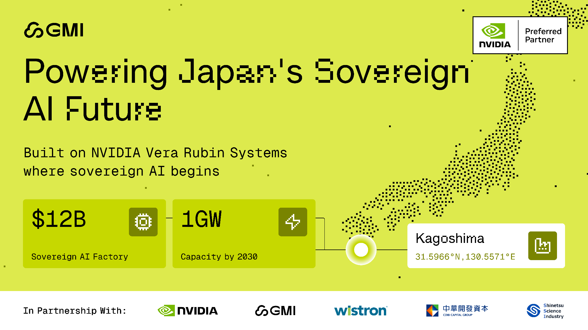 The first Vera Rubin deployment is the Kagoshima AI Factory, announced below. Additional rollout details across GMI's global footprint will follow as deployments come online.