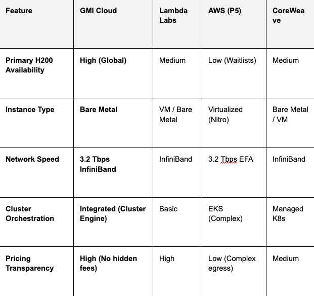 Comparison: GMI Cloud vs. Competitors